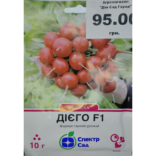 Ранній гібрид редиски, що формує гарний урожай навіть при понижених температурах та недостатньому освітленні. Придатний для вирощуван-ня протягом усього сезону. Листя довжиною до 20 см, темно-зелене. Коренеплоди в діаметрі 4-5 см, одно-рідні, насиченого червоного кольору. М'якоть щільна, хрустка, білого кольо-ру, не схильна до формування пустот. Гібрид стійкий до несправжньої борошнистої роси, толерантний до кореневої гнилі та ризоктоніозу.