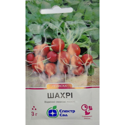 Середньоранній сорт редиски для всесезонного вирощування. Розетка листя невелика. Корене-плоди округлі, діаметром 5-5,5 см, вирівняні, яскраво-червоного кольору. М'якоть біла, однорідна, хрустка, не розтріскується та не дрябліє. Має легкий гострий смак. Підходить для вживання у свіжому вигляді та нетривалого зберігання.