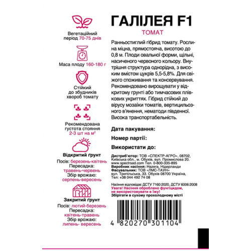 • Вегетаційний період – 70-75 днів від висадження розсади
