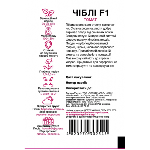 Вегетаційний період – 70-75 днів від висадження розсади.